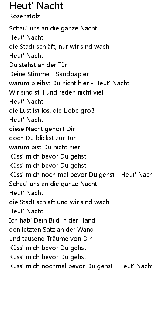 | Küss' mich nochmal bevor Du gehst - Heut' Nacht |
