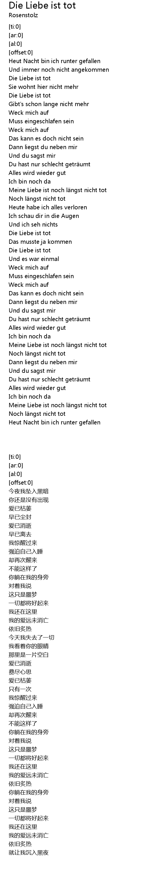 | [00:28.31] | Die Liebe ist tot |