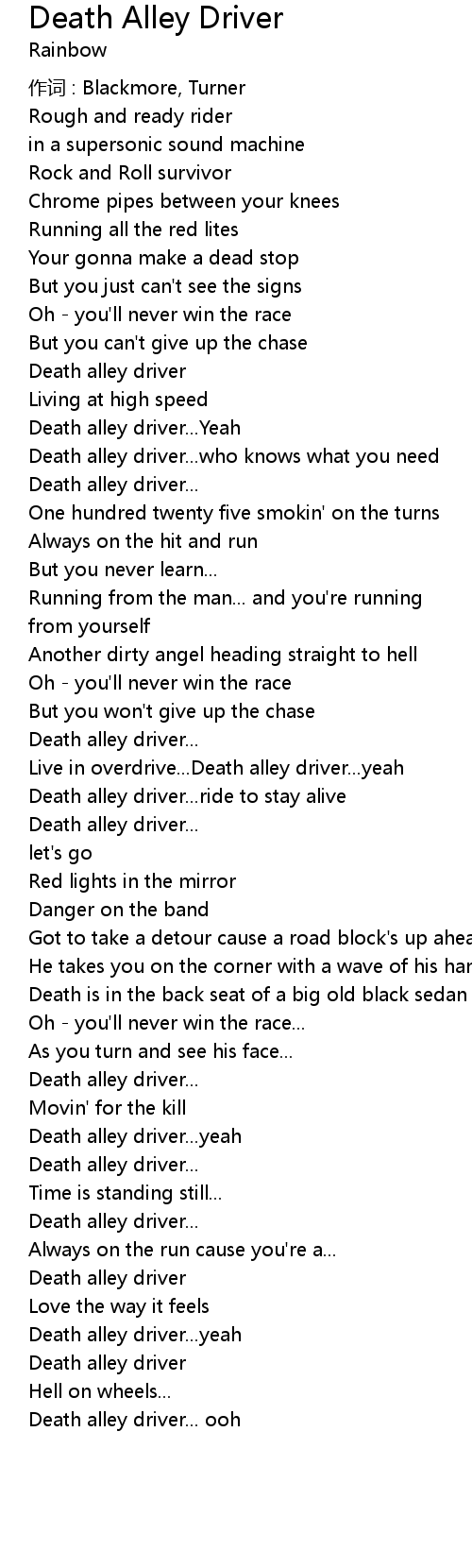 | Death alley driver... Yeah | |