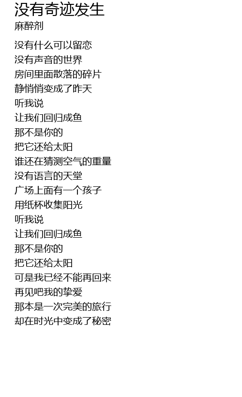 | [00:09.43] | méi yǒu shēng yīn de shì jiè |