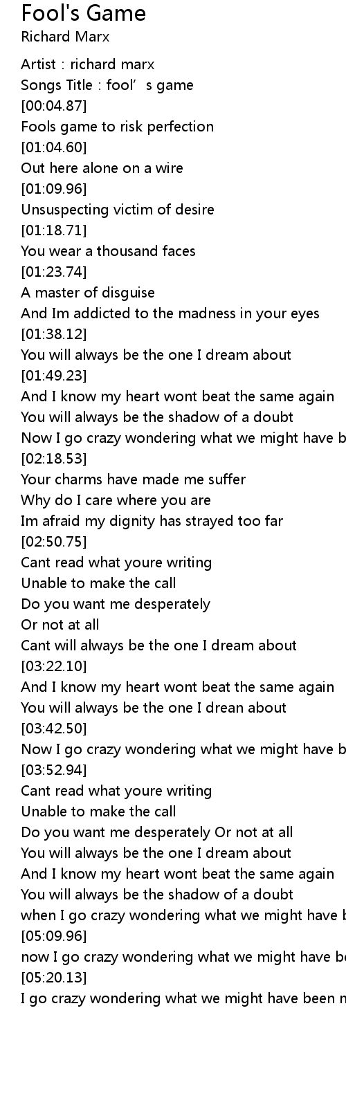 | [00:02.44] | Songs Title: fool' s game |
