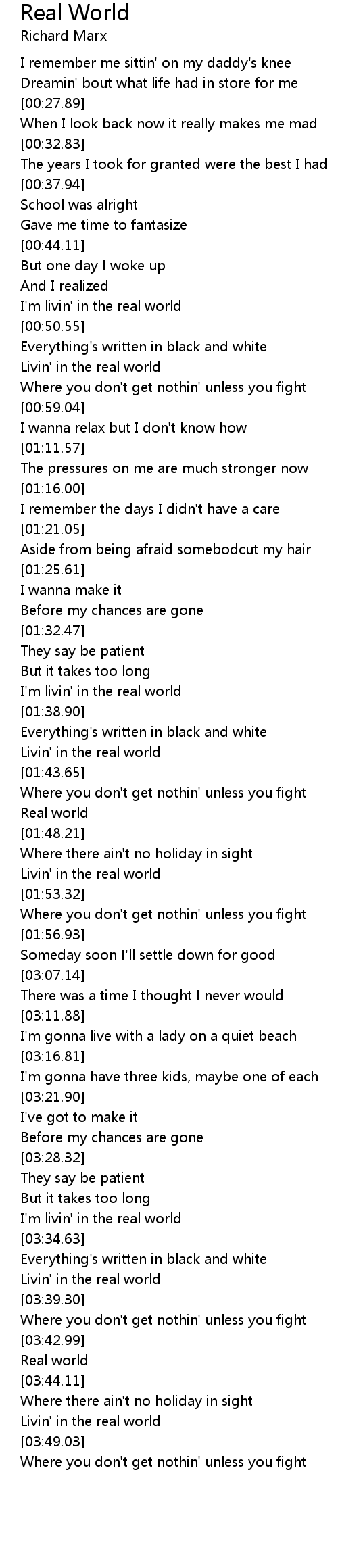 I'm livin' in the real world |