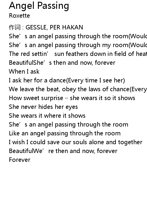 | She’s an angel passing through the room(Would you like to know her?) | |
