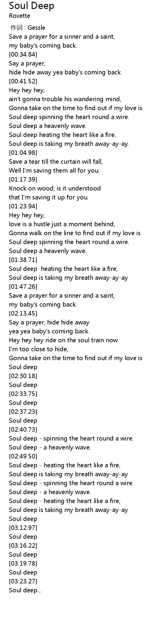 | [03:01.11] | Soul deep - a heavenly wave. |