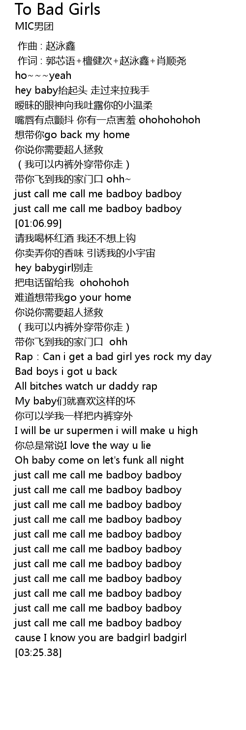 | [03:19.57] | cause I know you are badgirl badgirl |