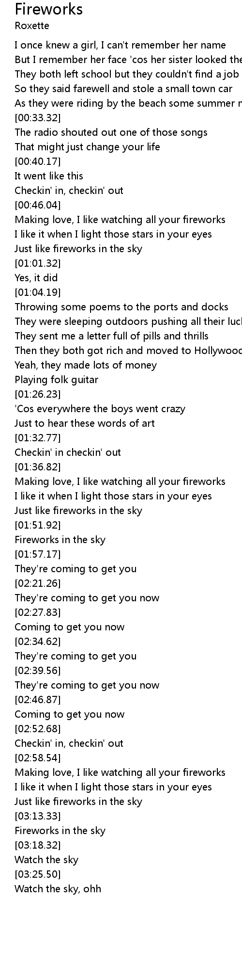 [03:15.26] Fireworks in the sky