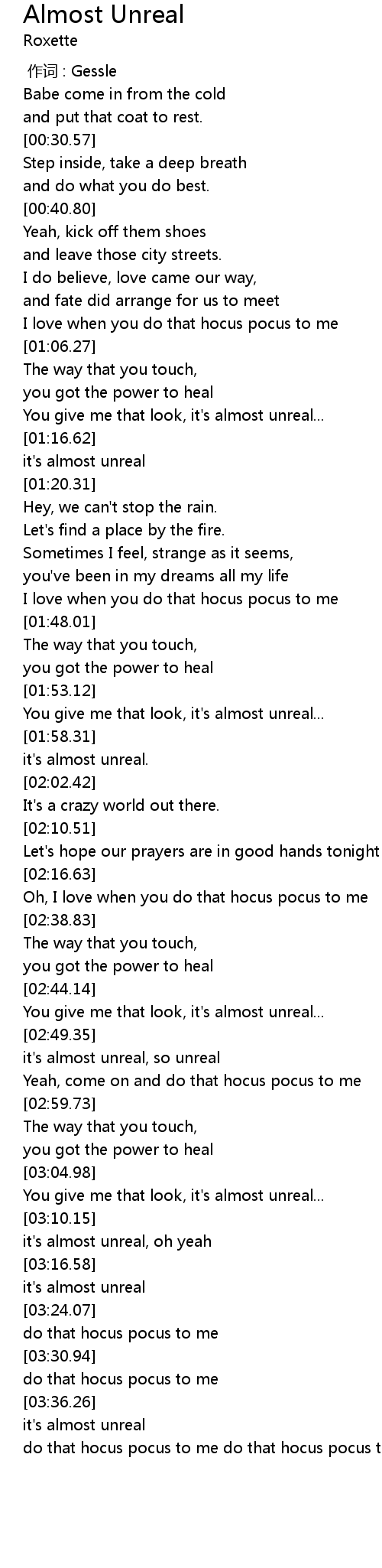 | [01:53.75] | You give me that look, it's almost unreal... |