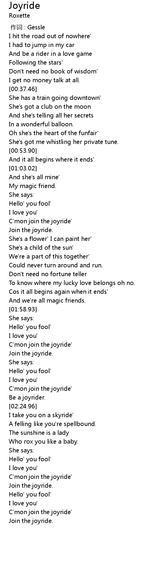 | [00:49.14] | Oh she's the heart of the funfair' |