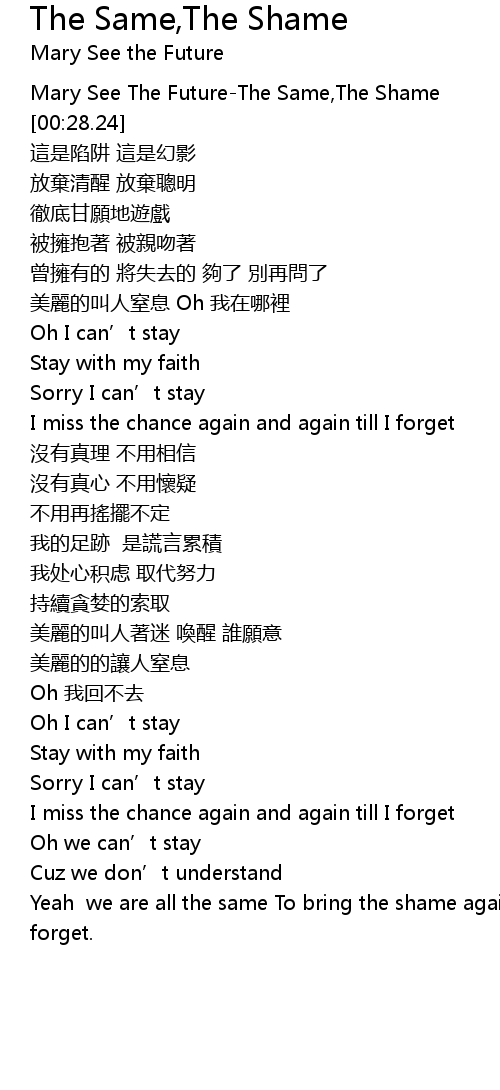 | [00:01.52] | Mary See The Future-The Same,The Shame |