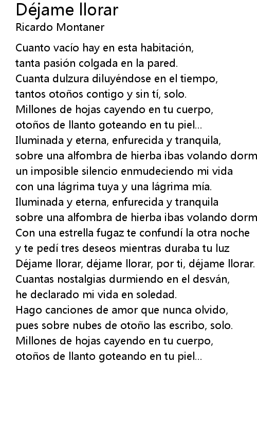 | De jame llorar, de jame llorar, por ti, de jame llorar. | |