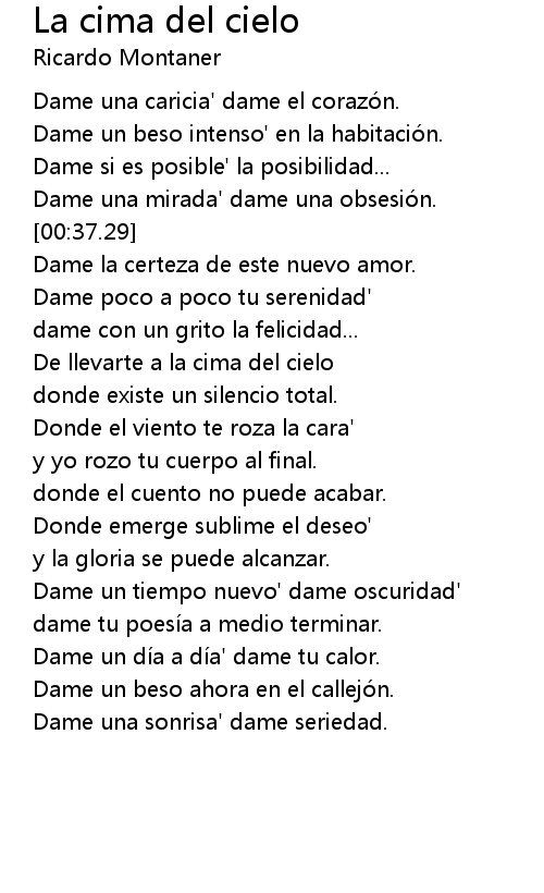 | [02:17.22] | Dame un di a a di a' dame tu calor. |