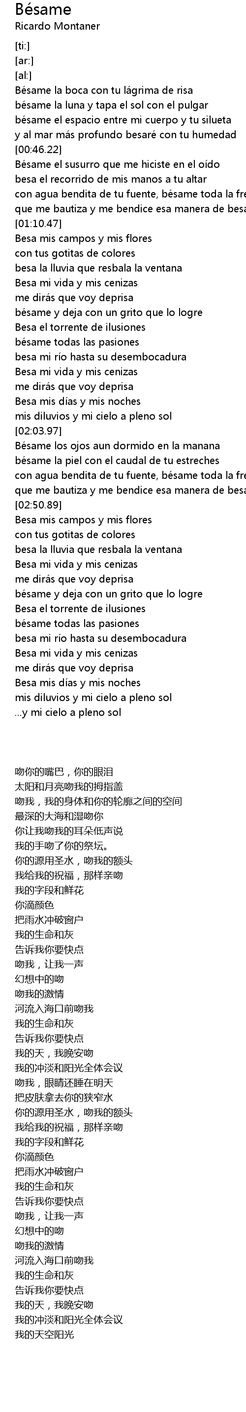 | [03:20.86] | besa mi ri o hasta su desembocadura |