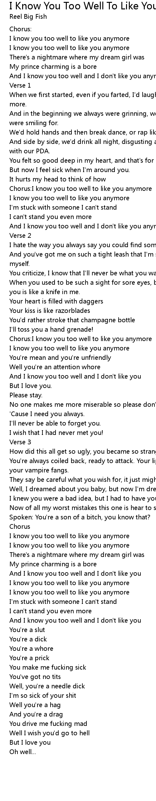 When you used to be such a sight for sore eyes, but now looking at you is like a knife in me. |
