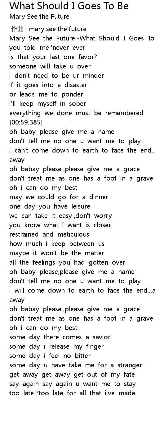 | [00:00.785] | Mary See the Future What Should I Goes To Be |