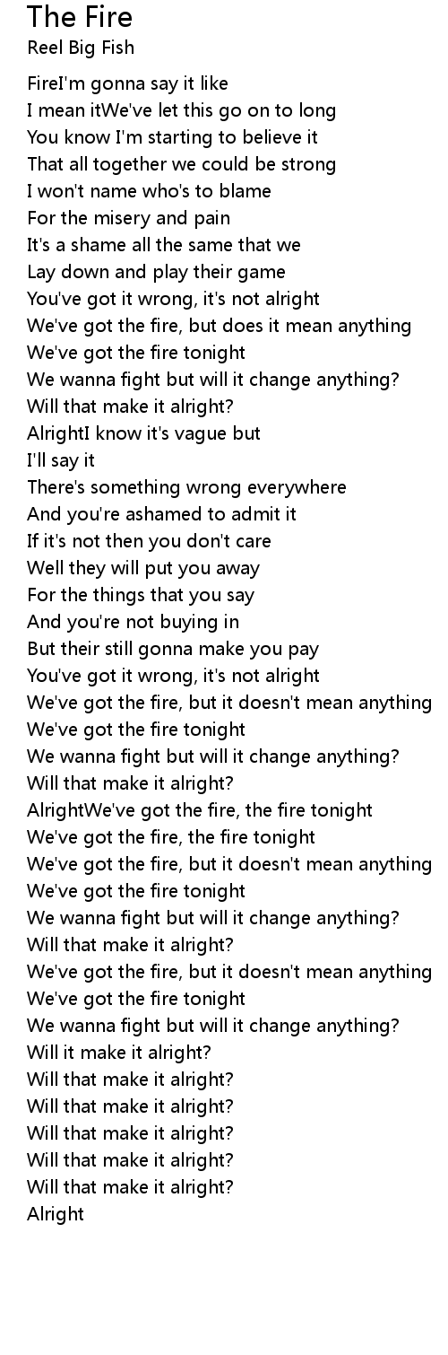 AlrightWe've got the fire, the fire tonight |