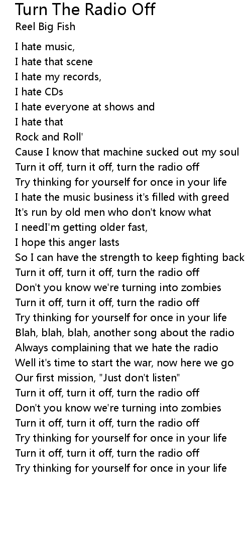 Turn it off, turn it off, turn the radio off |
