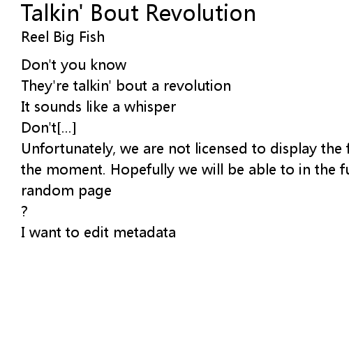 | Unfortunately, we are not licensed to display the full lyrics for this song at the moment. Hopefully we will be able to in the future. Until then, how about a | |