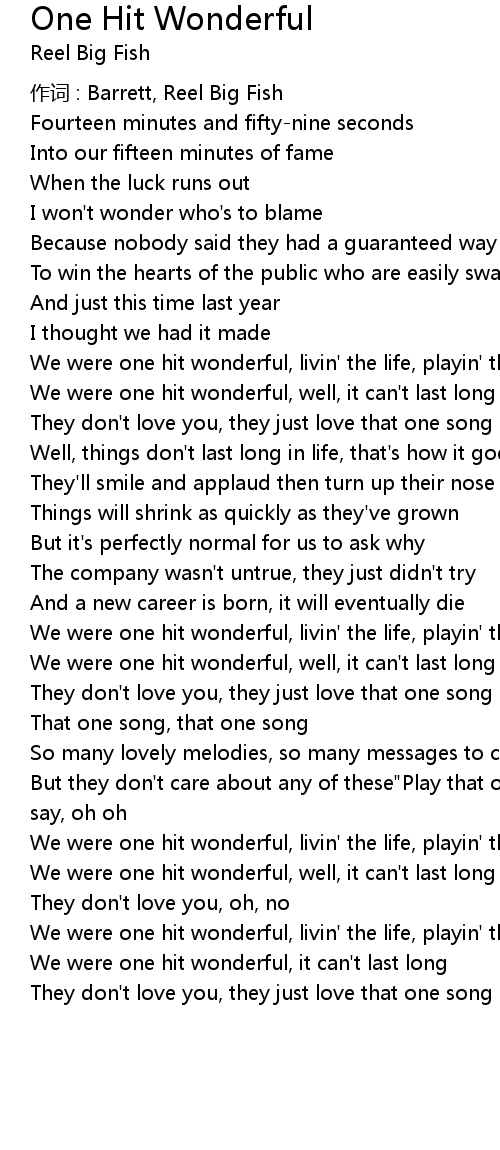 | We were one hit wonderful, well, it can' t last long | |