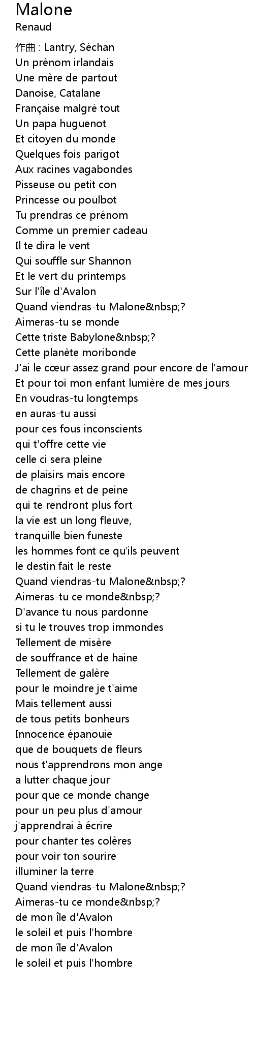 | Et pour toi mon enfant lumiè re de mes jours | |