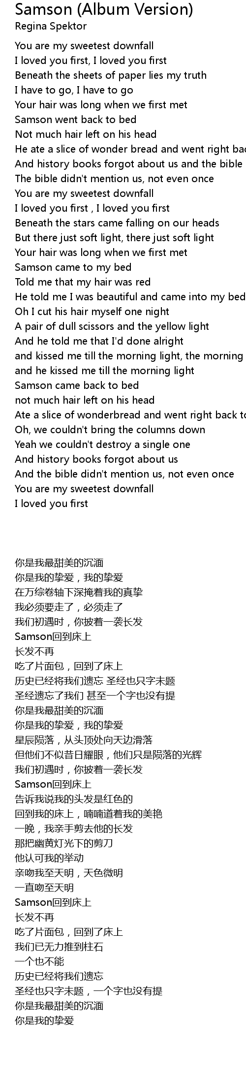 Samson came to my bed |