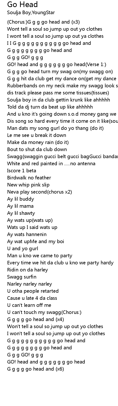 GO! head and g g g g g g go head(Verse 1:) |