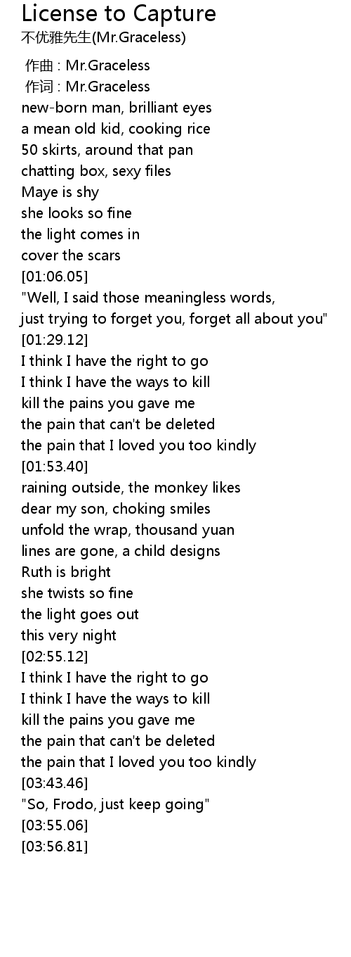 | [00:01.00] | 作词 : Mr.Graceless |