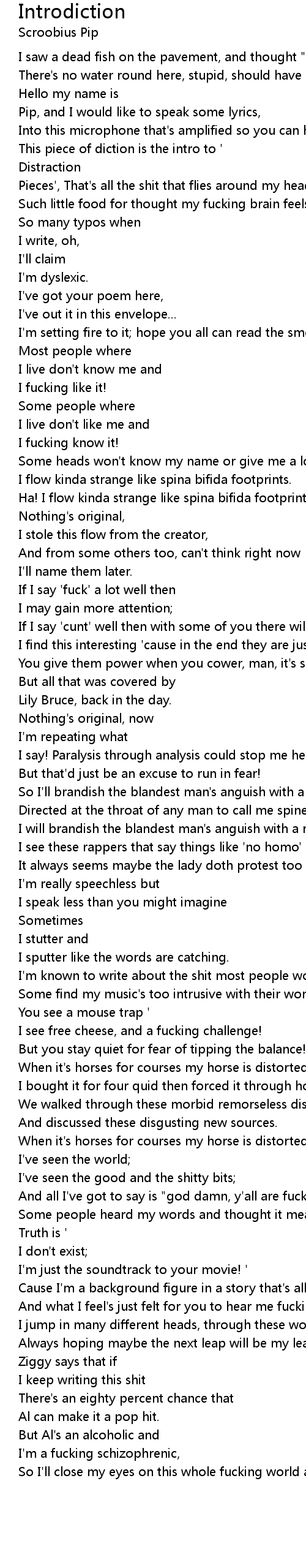 Pieces', That's all the shit that flies around my head and keeps me sleepless. |