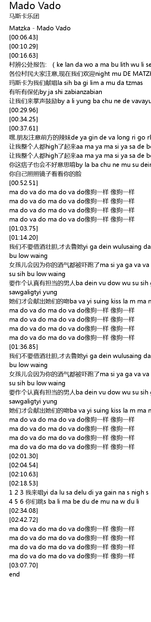 | [03:01.77] | ma do va do ma do va do像狗一样 像狗一样 |