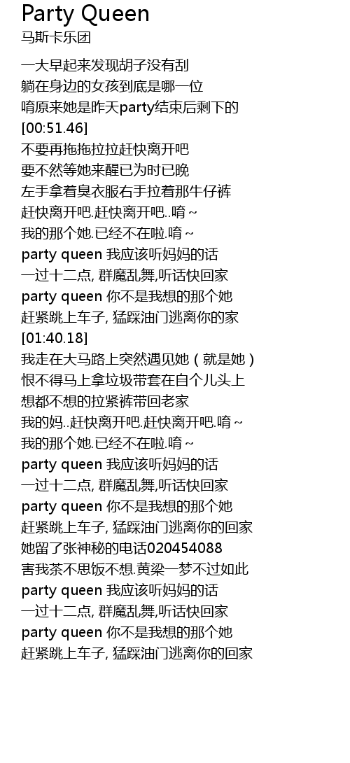 | [02:59.95] | party queen 我应该听妈妈的话 |