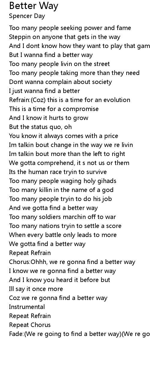 Chorus:Ohhh, we re gonna find a better way |