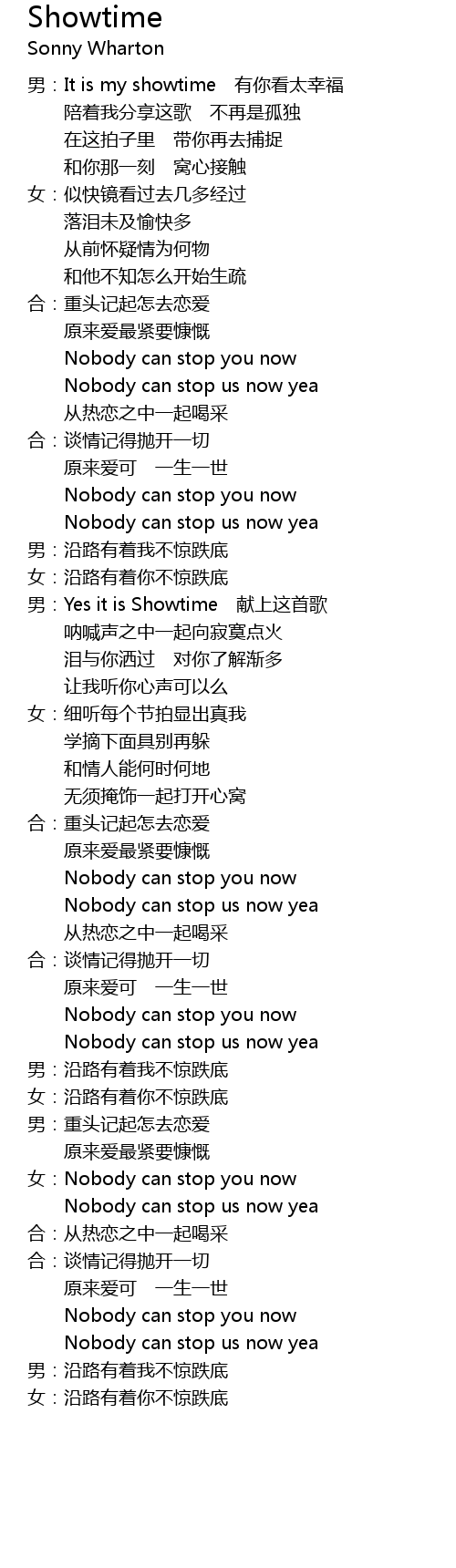 | nán: Yes it is Showtime xiàn shàng zhè shǒu gē | |