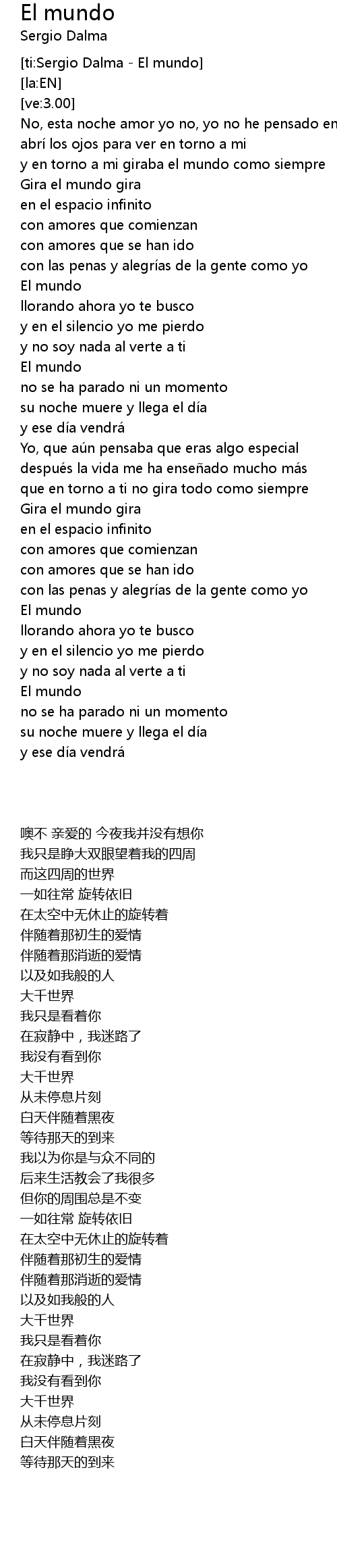 | [02:30.70] | El mundo |