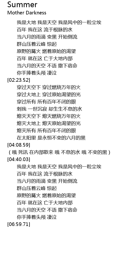 | [06:42.33] | 当六月的天空 不语 撒下宿命 |