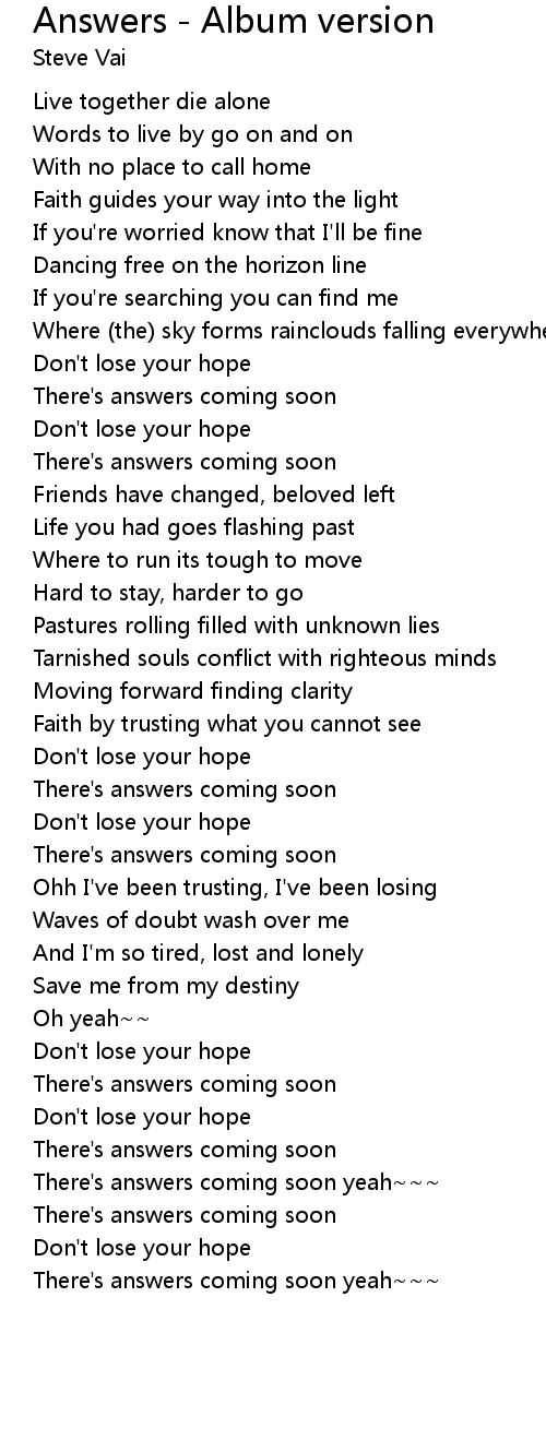 There's answers coming soon |