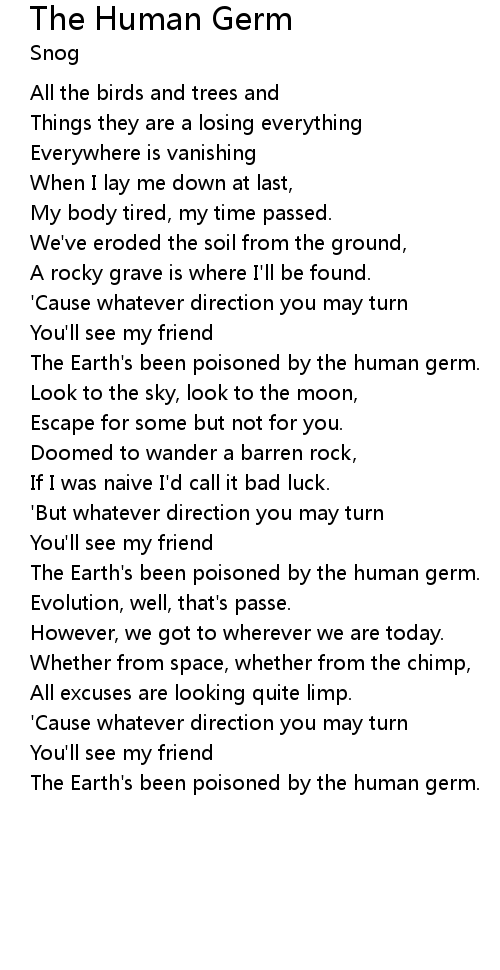 The Earth's been poisoned by the human germ. |