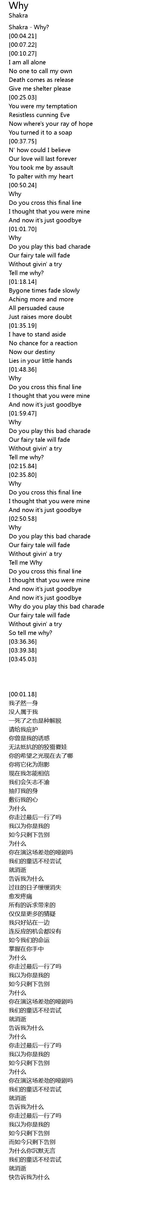 | [00:01.18] | Shakra - Why? |
