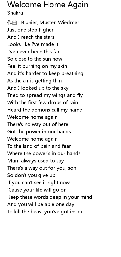 | Welcome home again | |