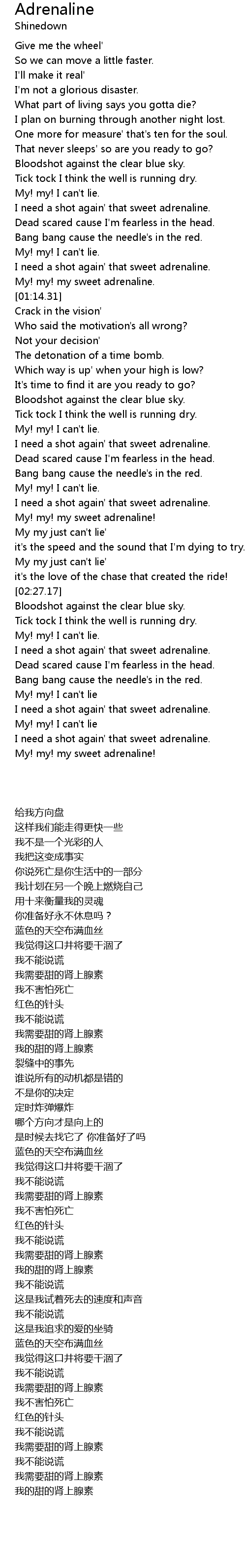 | [00:51.91] | I need a shot again' that sweet adrenaline. |