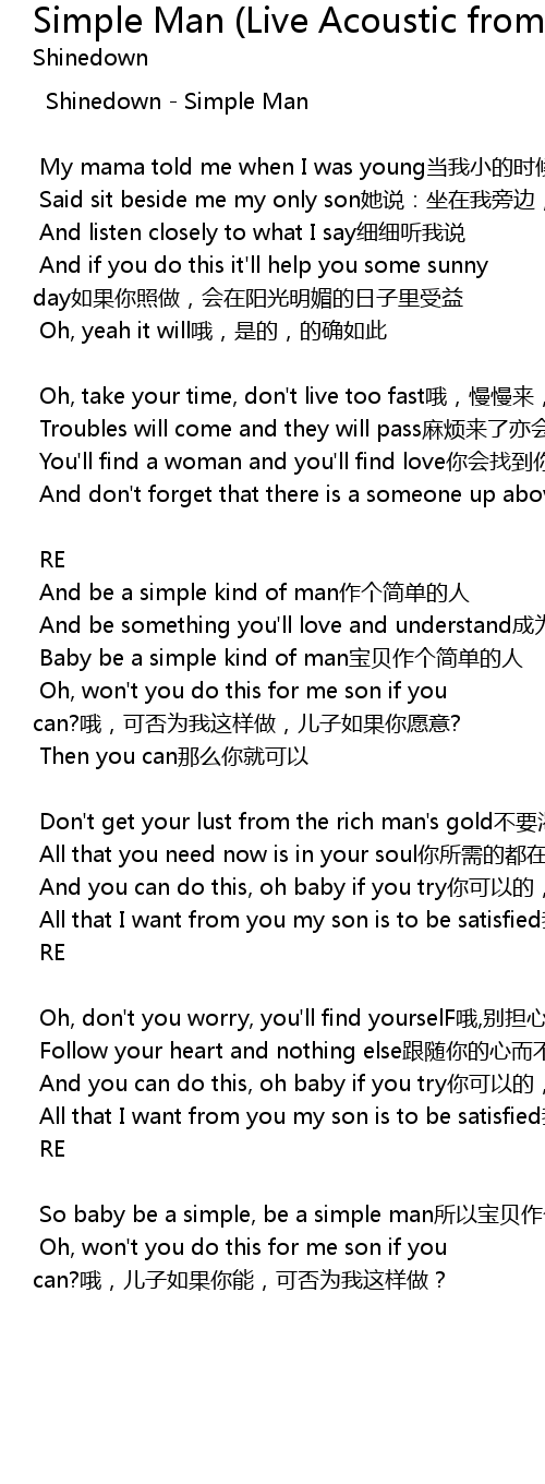 | So baby be a simple, be a simple man所以宝贝作个朴实,简单的人 | |