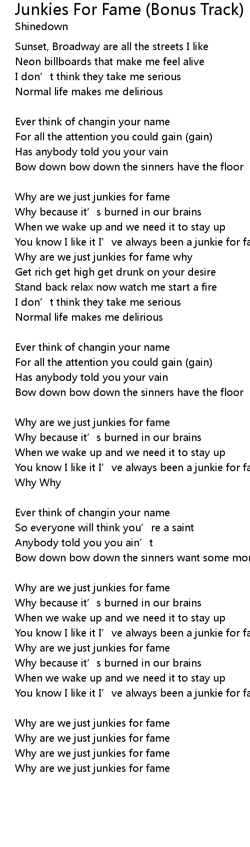 | Why are we just junkies for fame why | |