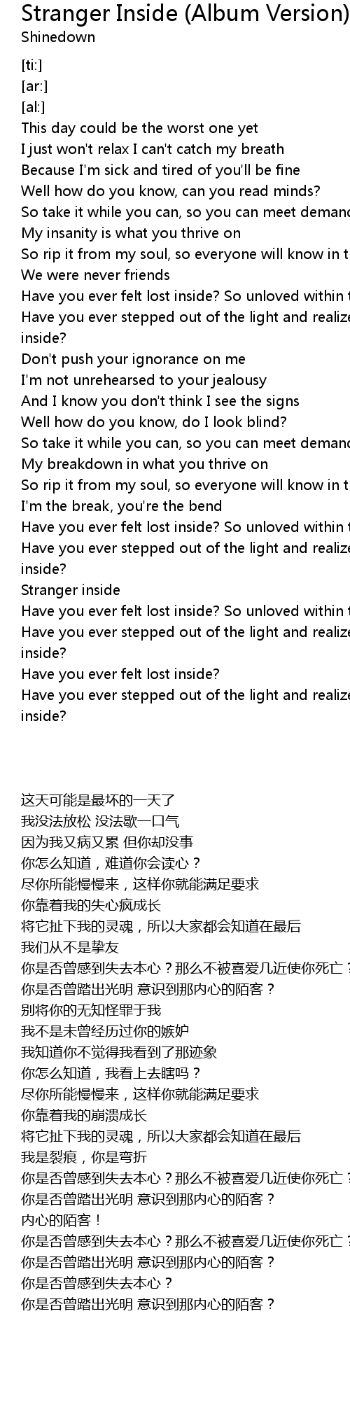 Have you ever felt lost inside? So unloved within that you almost die? |