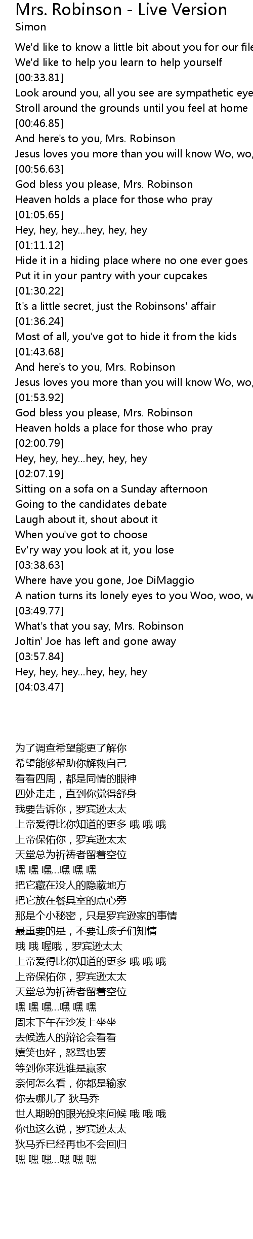 God bless you please, Mrs. Robinson |