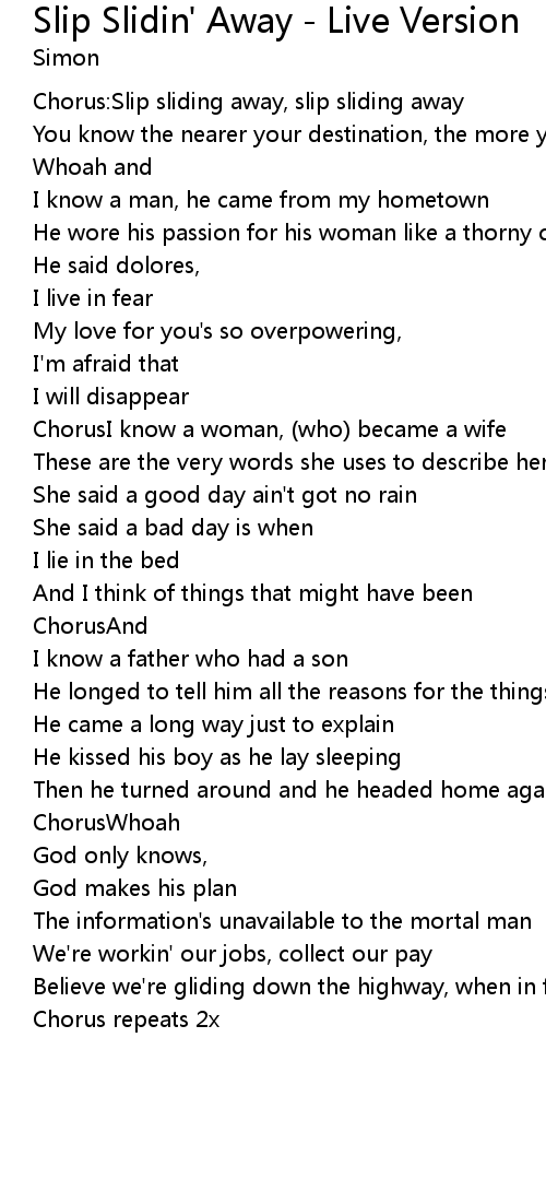 Believe we're gliding down the highway, when in fact we're slip sliding away |