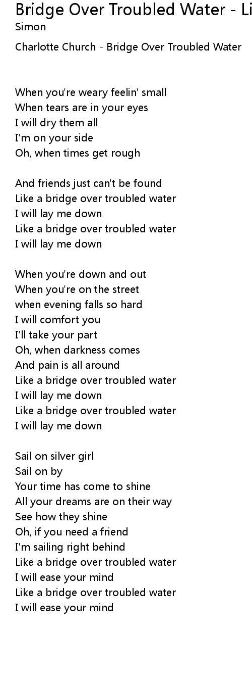 Bridge Over Troubled Water - Live Version Lyrics