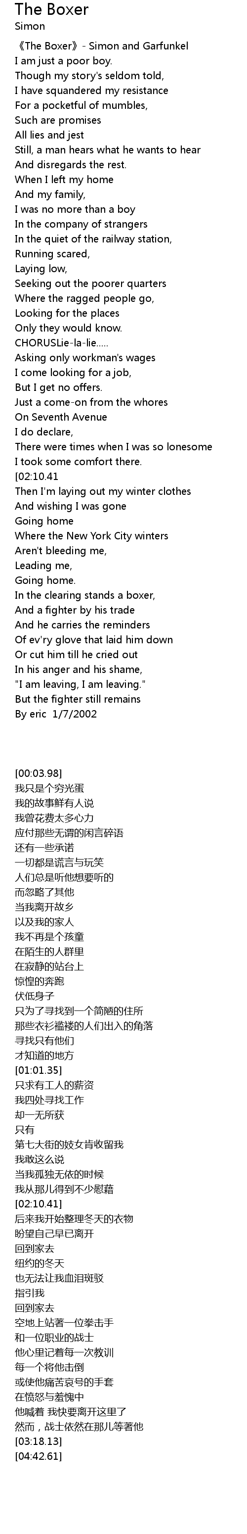 | [00:03.98] | The Boxer Simon and Garfunkel |