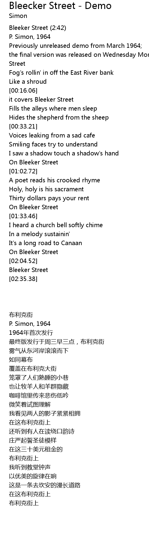 [00:05.05] the final version was released on Wednesday Morning, 3 a.m. Bleecker Street