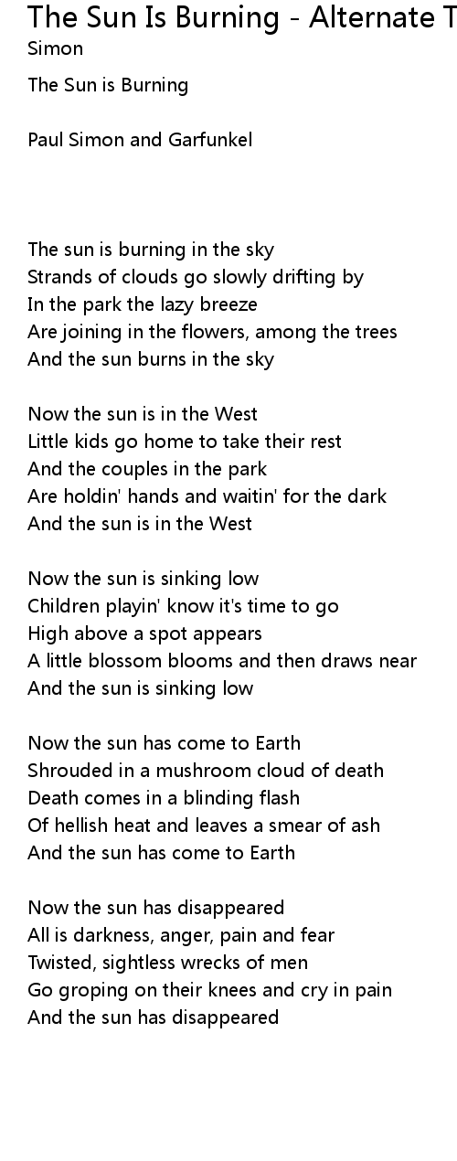The Sun Is Burning - Alternate Take 12 Lyrics