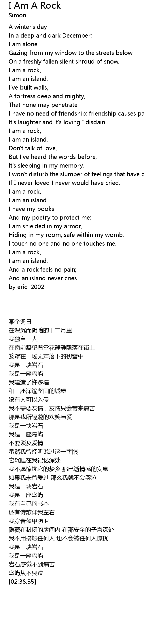 [00:59.95] I have no need of friendship; friendship causes pain.