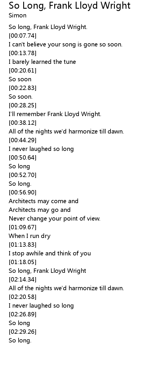 So long, Frank Lloyd Wright |