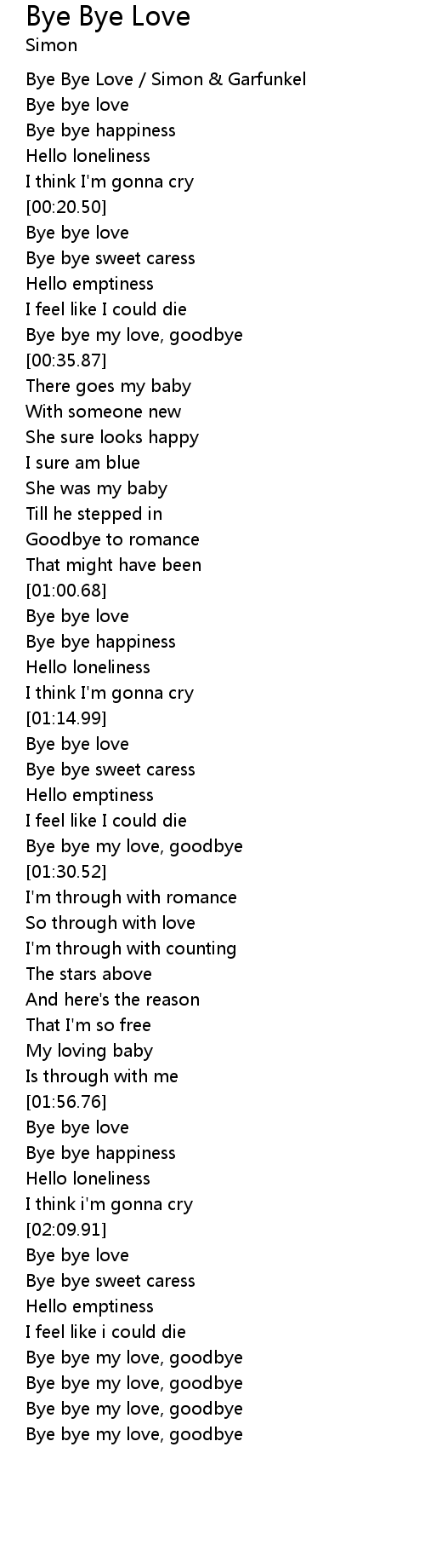 | [00:21.36] | Bye bye love |